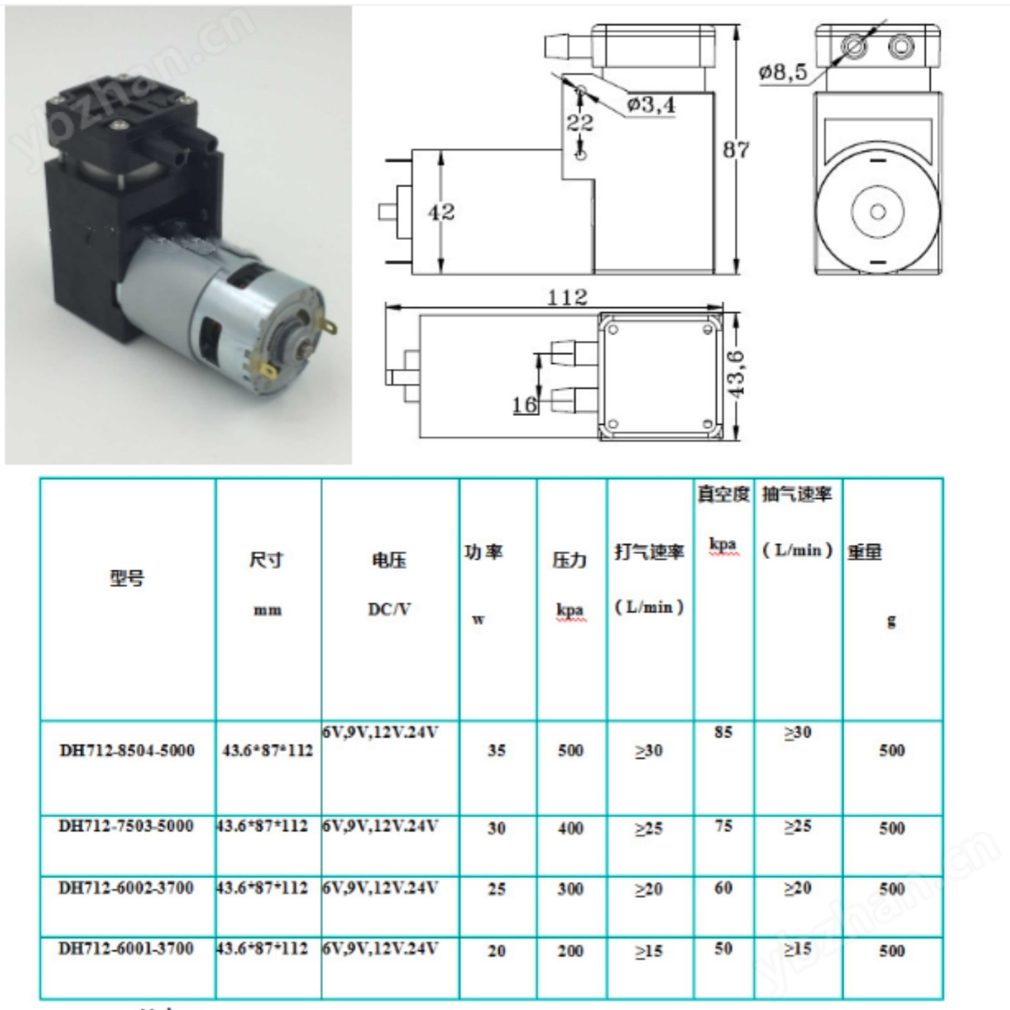 微型氣泵DH712-7503-5000 車胎打氣泵 單缸充氣活塞泵