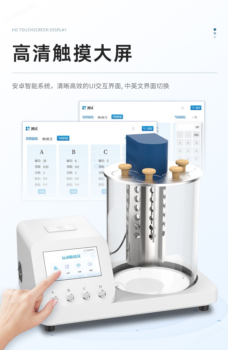 運動粘度測定儀是依據國家標準《GB265-88石油產品運動粘度測定法》設計制造的專用測試儀器,適用于測定液體石油產品的運動粘度。本儀器具有計時試樣運動時間,自動計算運動粘度的最終結果。本方法適用于測定液體石油產品(指牛頓液體)的運動粘度,其單位為m2/s,通常在實際中使用為mm2/s。動力粘度可由測得的運動粘度乘以液體的密度求得。本方法是在某一恒定的溫度下,測定一定體積的液體在重力下流過一個標定好的玻璃毛細管粘度計(品氏、烏氏)的時間,粘度計的毛細管常數與流動時間的乘積,即為該溫度下測定液體的運動粘度。該溫度下運動粘度和同溫度下液體的密度之積為該溫度下的動力粘度。