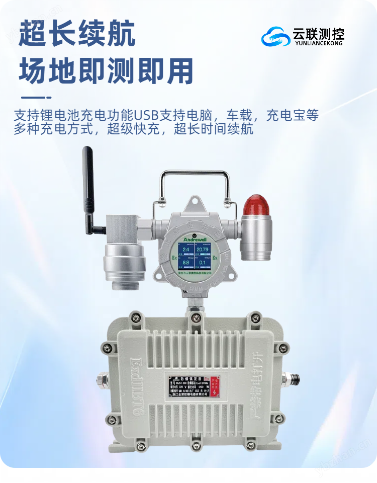 ADVL1000-4ST 移動區域氣體檢測報警器,有限空間、特殊動火等作業現場需要配置移動式多合一氣體檢測儀,實時在線檢測氧氣、硫化氫、可燃等易燃易爆、有毒有害氣體,配備高清防爆布控球實現遠程視頻監控查看作業現場,通過4G等無線信號輸出方式,將氣體濃度檢測、作業現場視頻等數據實時上傳管理員手機、云平臺等設備,確保后續作業現場可回溯。