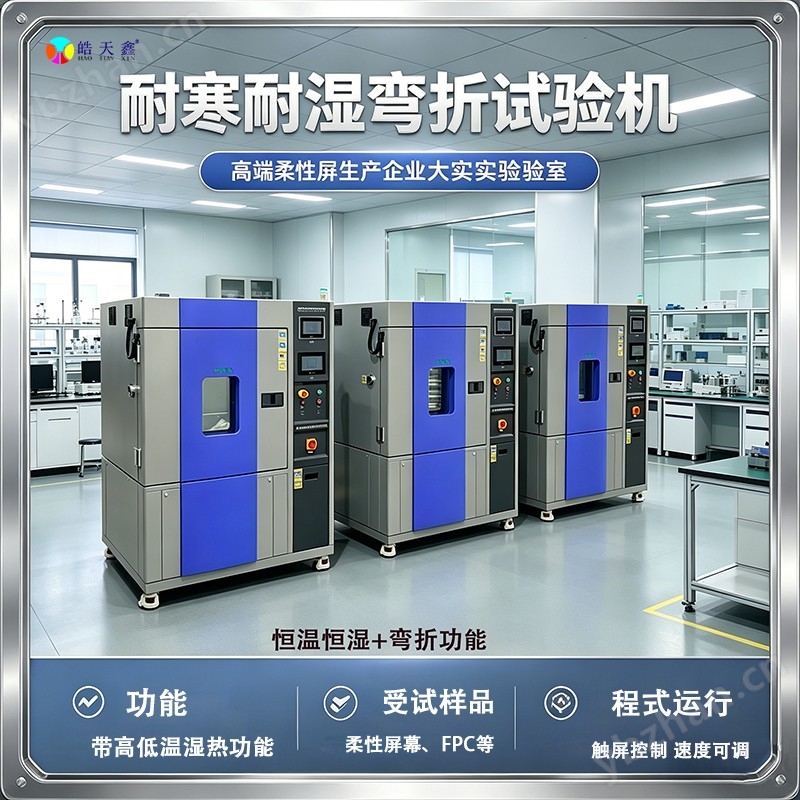 SMC-210PF-FPC是皓天鑫專為柔性電子產品可靠性驗證而開發的一款集成型測試設備,它將溫濕度環境模擬與精密機械彎折兩大功能合二為一,可同步對柔性屏、FPC柔性線路板、UTG超薄玻璃、CPI薄膜、OCA光學膠等材料施加環境應力與機械彎折應力,真實復現產品在極寒、高溫、高濕、交變等復合工況下的性能衰減過程,為研發選材、工藝優化和量產抽檢提供關鍵數據支撐。