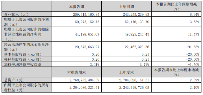 利潤端方面,公司一季度實現歸母凈利潤5027.32萬元,較上年同期的5217.61萬元,同比下降3.65%;扣除非經常性損益后的歸母凈利潤為4419.87萬元,同比下滑幅度擴大至11.47%,反映出公司核心業務盈利能力面臨一定壓力。此外,基本每股收益為0.20元/股,較上年同期的0.25元/股下降20%,稀釋每股收益同步下滑20%,主要因股本變動導致每股收益被稀釋。