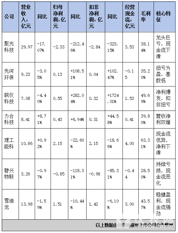 增長稀缺:七家企業中,僅力合科技實現營收正增長(+8.71%),成為行業“獨苗”,其余企業均出現不同程度下滑或微增。