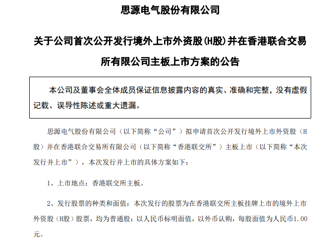 【儀表網 企業動態】12月16日,思源電氣(002025.SZ)公告,擬申請首次公開發行境外上市外資股(H股)并在香港聯合交易所有限公司主板上市。