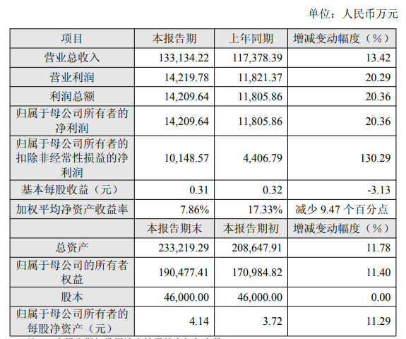 截至2025年12月31日,公司總資產233,219.29萬元,較年初增長11.78%;歸屬于母公司的所有者權益190,477.41萬元,較年初增長11.40%。