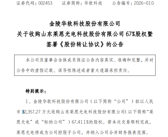 21華軟科技擬3.24億收購(gòu)萊恩光電67%股權(quán) 入局工業(yè)安全賽道打造業(yè)績(jī)新增長(zhǎng)極