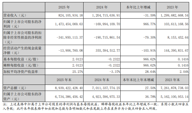 儀表網 行業財報】3月26日,賽微電子(300456.SZ)發布2025年年度報告,公司營業收入8.24億元,同比減少31.59%;歸屬于上市公司股東的凈利潤14.73億元,同比扭虧為盈;歸屬于上市公司股東的扣除非經常性損益的凈虧損為3.42億元,同比擴大79.30%。基本每股收益為2.0123元。此外,擬向全體股東每10股派發現金紅利3.70元(含稅)。