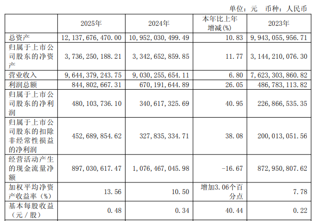 儀表網(wǎng) 行業(yè)財報】3月27日,國電南自(600268)披露2025年年度報告。2025年公司實(shí)現(xiàn)營業(yè)總收入96.44億元,同比增長6.80%;歸母凈利潤4.80億元,同比增長40.95%;扣非凈利潤4.53億元,同比增長38.08%;基本每股收益為0.48元。公司2025年度分配預(yù)案為:擬向全體股東每10股派現(xiàn)2元(含稅)。