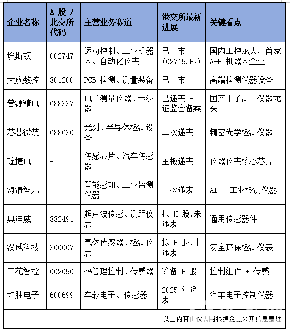 傳感器、工控及精密檢測設備的港股上市潮正在上演。從已掛牌的行業龍頭,到密集遞表的專精特新企業,再到紛紛啟動“A+H”計劃的細分冠軍,國產儀器儀表正借助香港資本市場,加速走向高端化與全球化。