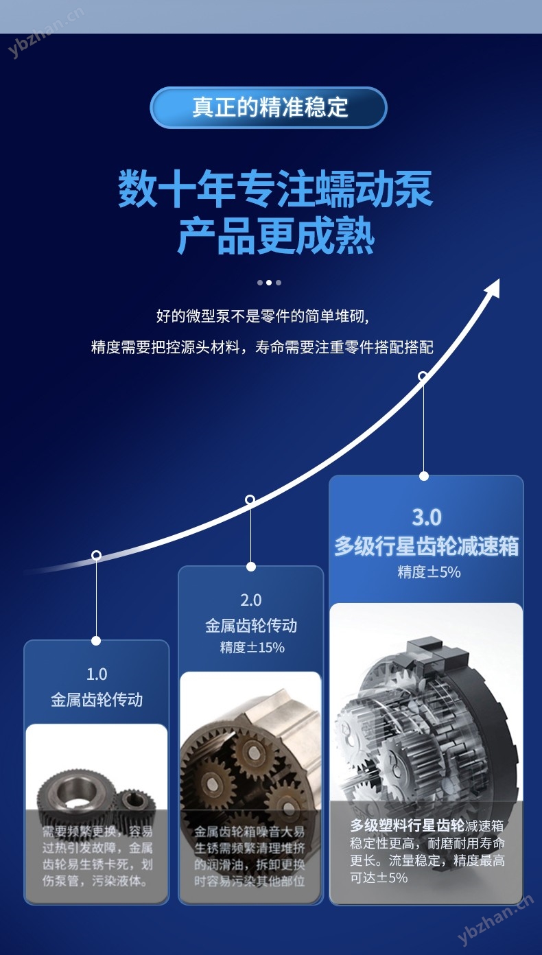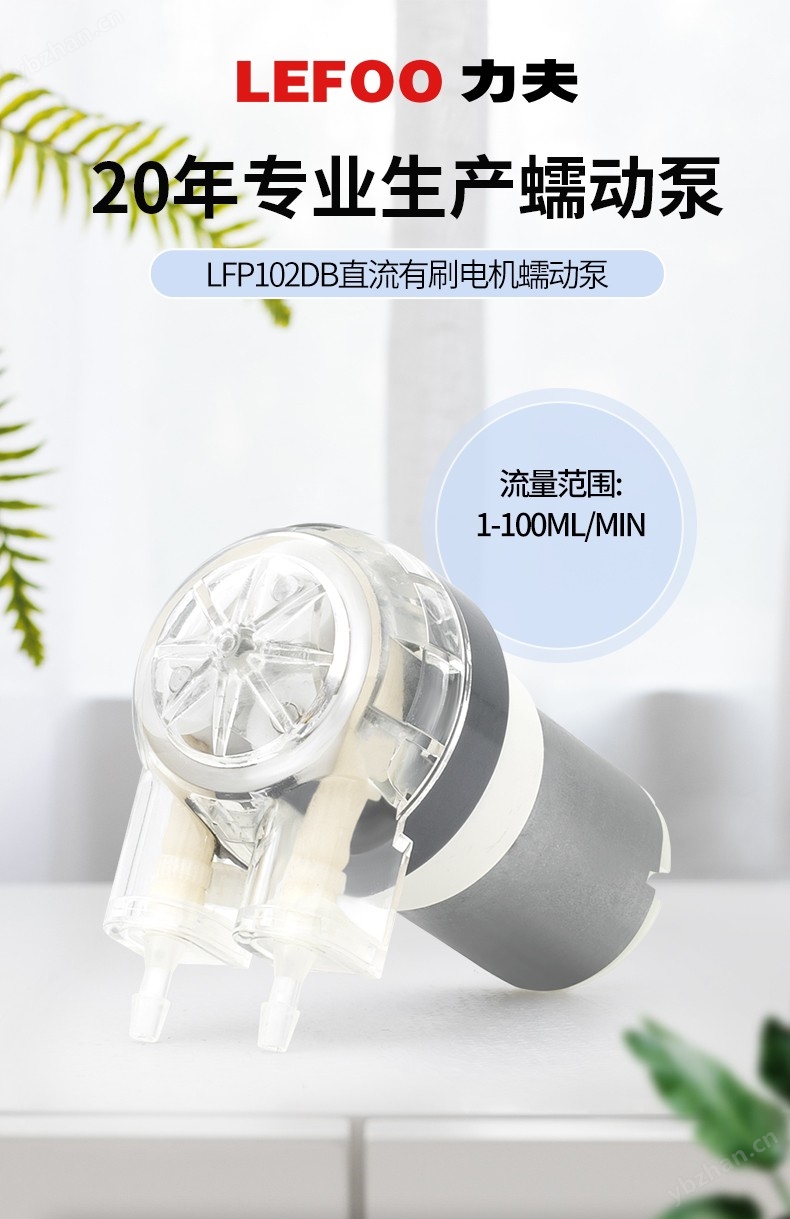 LFP102/DB直流有刷蠕動泵,高精度、低噪音、長壽命、體積小、易拆裝。不銹鋼安裝板(可定制),直流有刷電機驅動,通電運轉定量供給。DC12V/DC24V供電,功率≤5W,重108g,0-45℃、濕度<85%RH環境適用,標配3滾輪,適配多種管材。應用于掃拖、印染、儀器分析等多行業,流量9-100ml/min。