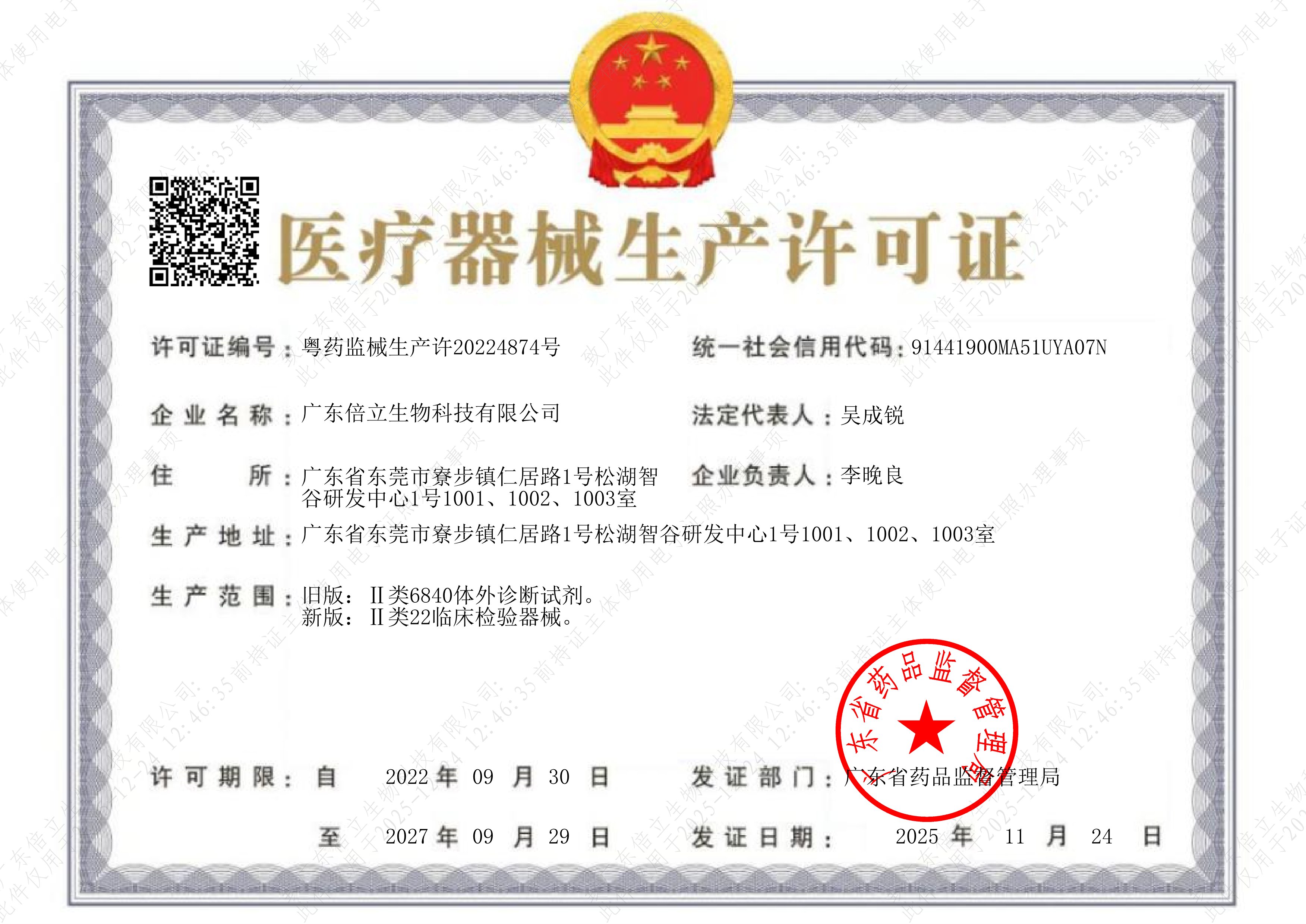 廣東倍立生物科技有限公司是一家集產品研發、注冊、生產和銷售于一體的高科技技術有限公司。業務范圍涵蓋生命科學設備、水質檢測設備及試劑、信息化溯源質量管理系統等領域。