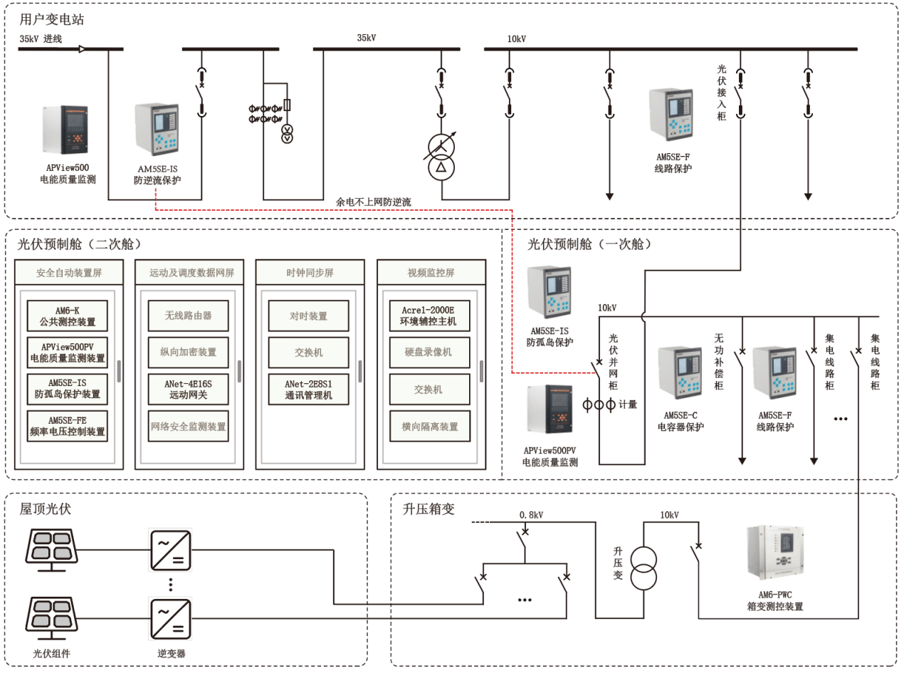 根據《分布式電源接入電網技術規定》并網點安裝防孤島保護裝置,防止光伏電站孤島運行;