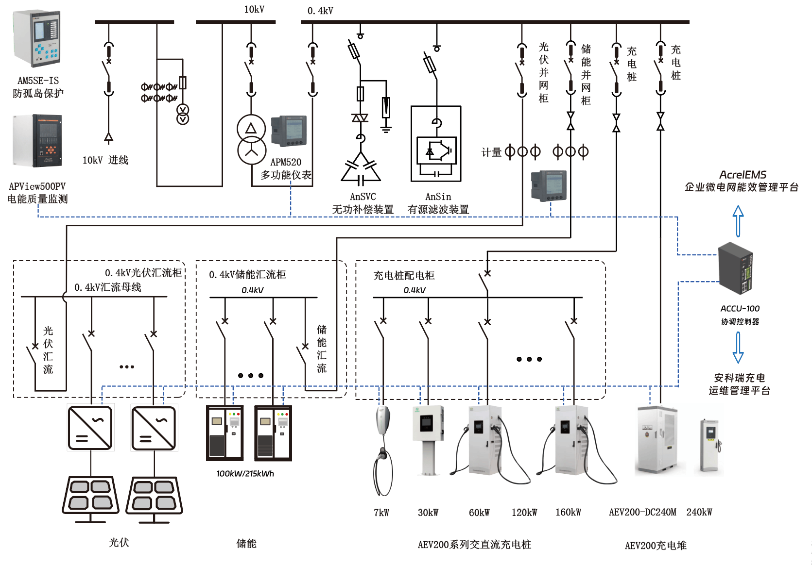 以電代油、以電代氣是零碳園區能源轉型中一個過程,為新能源車補充能源的充換電站也是必配設施。安科瑞有序充電系統基于預測算法,可以實現對企業變壓器負荷率、光伏發電和充電負荷需求預測結合充電樁的監控、調度和管理,提高光伏發電消納,提升園區微電網的運行可靠性,降低充電成本。