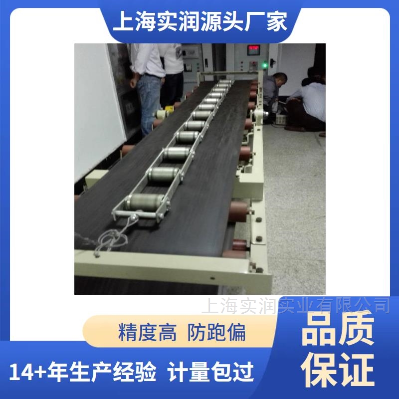 (1)速度測量,空稱運行五整圈后,停止運行,在皮帶直線段上用卷尺量取定的長度,并在尾劃定標記,然后開動輸送機運轉整圈,當皮帶尾標記與皮帶機機架上的固定標記重合時,打開秒表記時,當尾標記與固定標記重合時停秒表,讀取示值,依次測量三次,取算術平均值,為皮帶的運行速度V0 。 V0=L/T0 式中: L 所量皮帶長度(米) T0 運行時間(秒) (2)速度變化率的計算 按上述方法檢測輸送機在60%zui流量下,輸送物時的皮帶速度V1,則皮帶速度變化率為: St= ′100% 所得結果應不于額定速度的±5%。