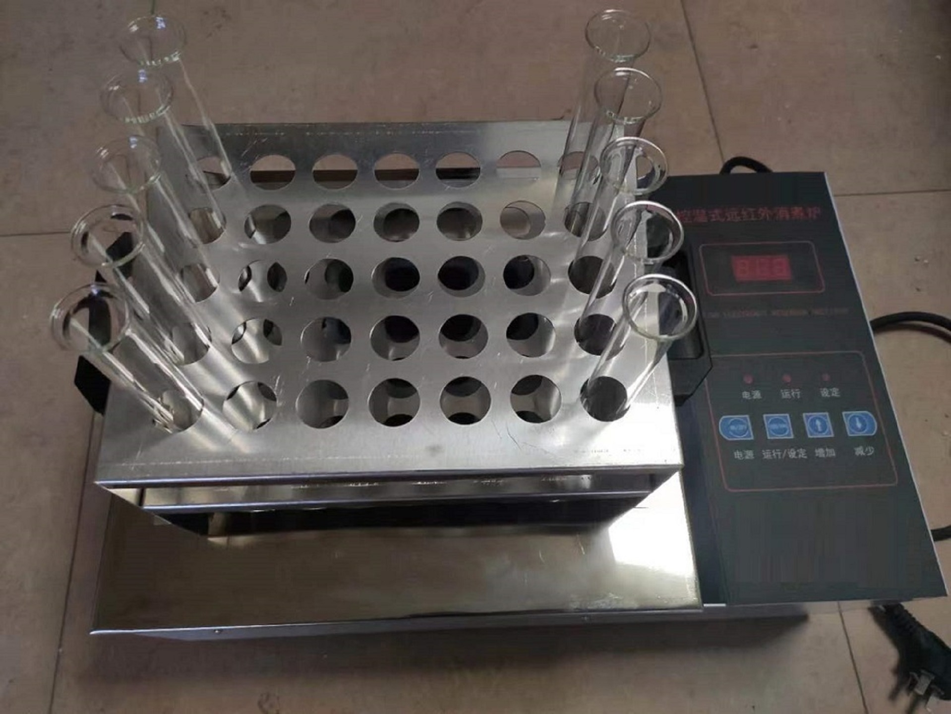 二、工作原理本產(chǎn)品采用遠(yuǎn)紅外元件做加熱體,根據(jù)遠(yuǎn)紅外輻射元件受熱后,主要輻射出1.5至2.5微米的遠(yuǎn)紅*外*線,易被加熱體所吸收,激*發(fā)分子共振,致使受熱體溫度升高,從而達(dá)到加速被消煮樣品消化之目的。感溫原件熱電偶把爐體溫度測(cè)量下來(lái),以電壓的形式傳給橋路,橋路部分對(duì)熱電偶冷端進(jìn)行補(bǔ)償,然后將信號(hào)送給單片微電腦,由電腦完成A/D轉(zhuǎn)換,把模擬量轉(zhuǎn)換為數(shù)字量,并進(jìn)行線性補(bǔ)償,后由數(shù)字顯示部份直觀地顯示出來(lái)。所需控制的溫度值由設(shè)定部分設(shè)定,并由微電腦對(duì)測(cè)量的溫度和設(shè)定值進(jìn)行比較,采用PID調(diào)節(jié),爐體加熱功率可隨*時(shí)間,條件的變化進(jìn)行調(diào)整,后保持爐體溫度恒定在設(shè)定溫度上。