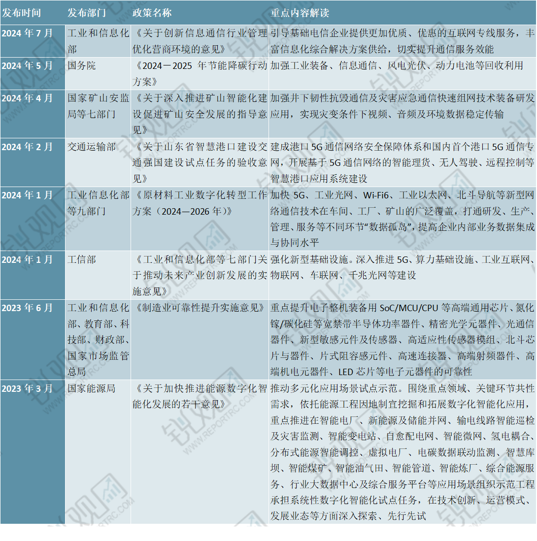 近年來,中國光通信行業(yè)受到各級政府的高度重視和國家產(chǎn)業(yè)政策的重點支持。國家陸續(xù)出臺了多項政策,鼓勵光通信行業(yè)發(fā)展與創(chuàng)新,《關(guān)于創(chuàng)新信息通信行業(yè)管理優(yōu)化營商環(huán)境的意見》《2024/u20142025年節(jié)能降碳行動方案》《關(guān)于深入推進礦山智能化建設促進礦山安全發(fā)展的指導意見》等產(chǎn)業(yè)政策為光通信行業(yè)的發(fā)展提供了明確、廣闊的市場前景,為企業(yè)提供了良好的生產(chǎn)經(jīng)營環(huán)境。具體情況列示如下: