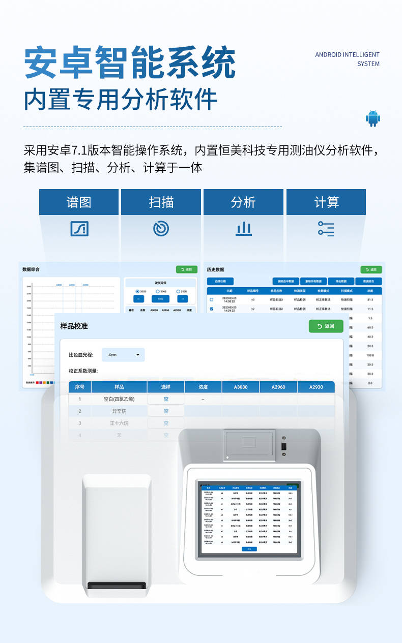 安卓智能操作系統:內置專用分析軟件,支持譜圖掃描、數據計算、歷史查詢等功能,操作便捷。
